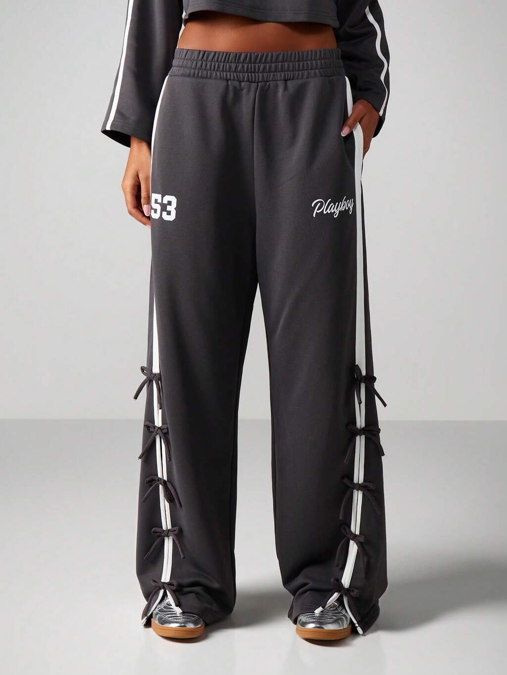Missguided x Playboy Wide Leg Sweatpants With Bow Detail