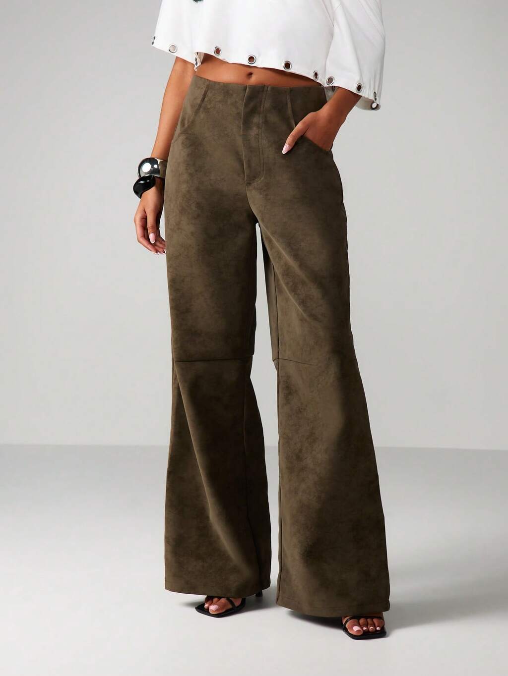 MISSGUIDED Wide Leg Palazzo Pants With Suede Texture