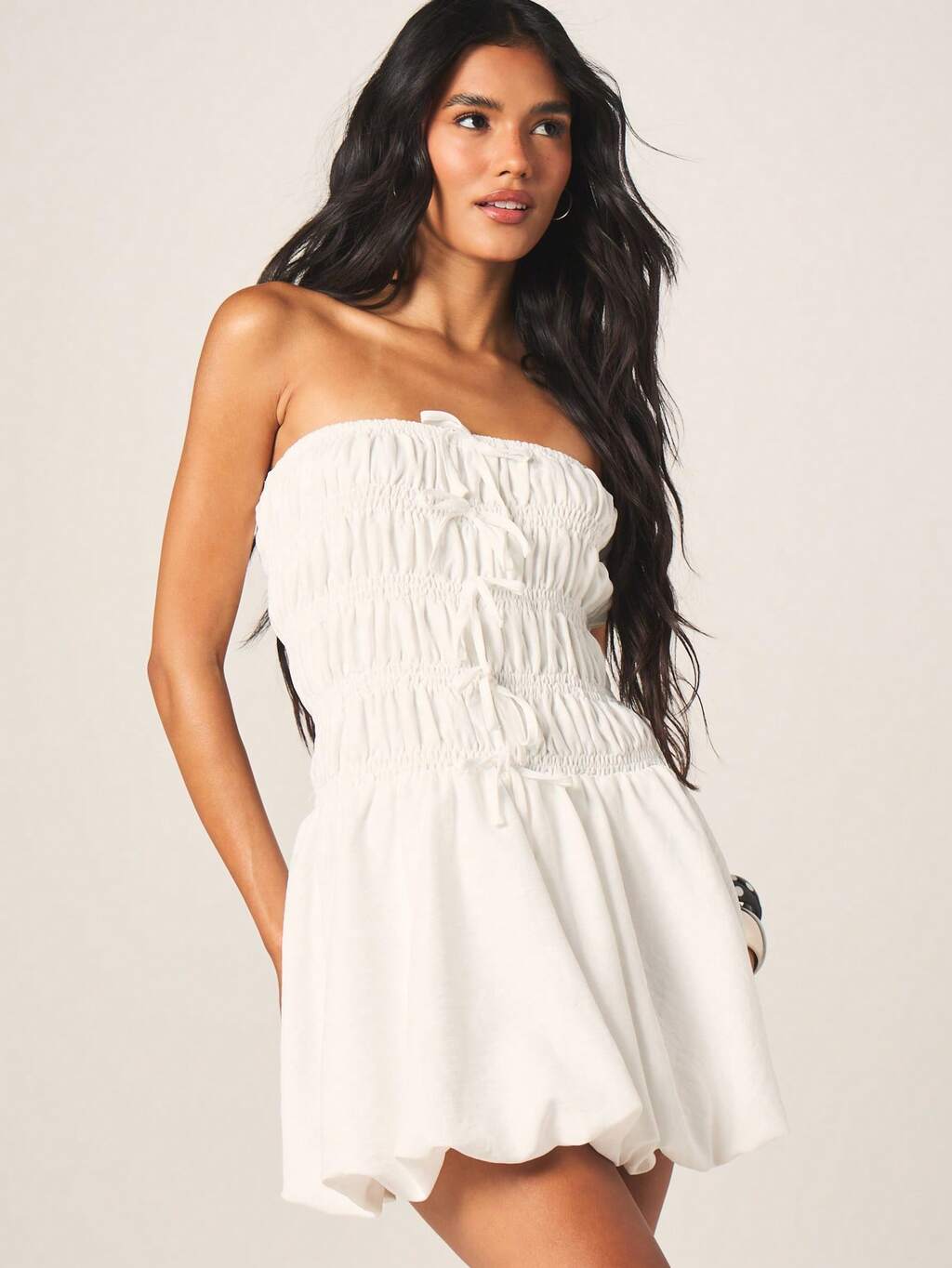 MISSGUIDED Strapless Shirred Mini Dress With Bow Detail