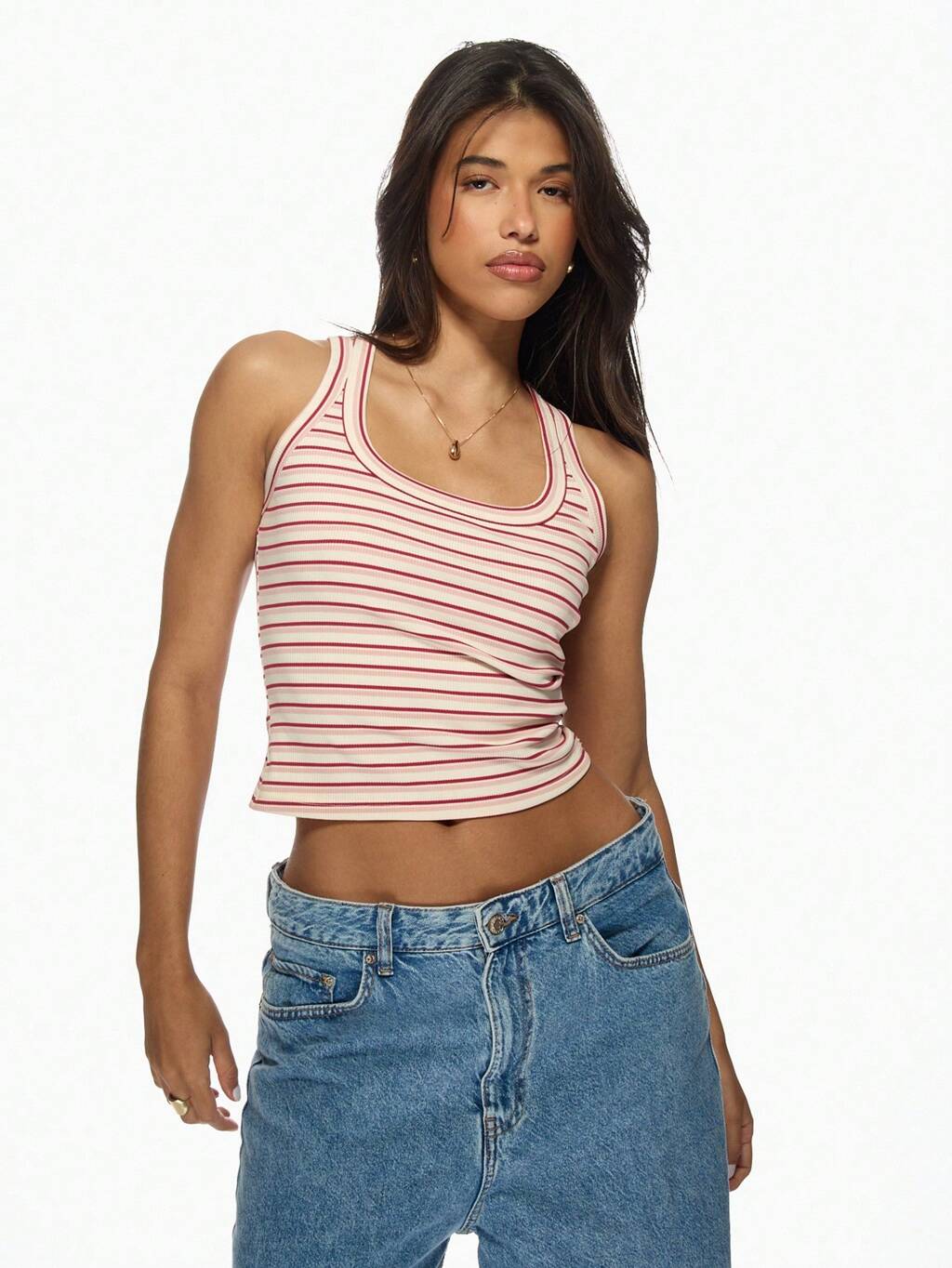 MISSGUIDED Ribbed Racerback Striped Crop Tank Top