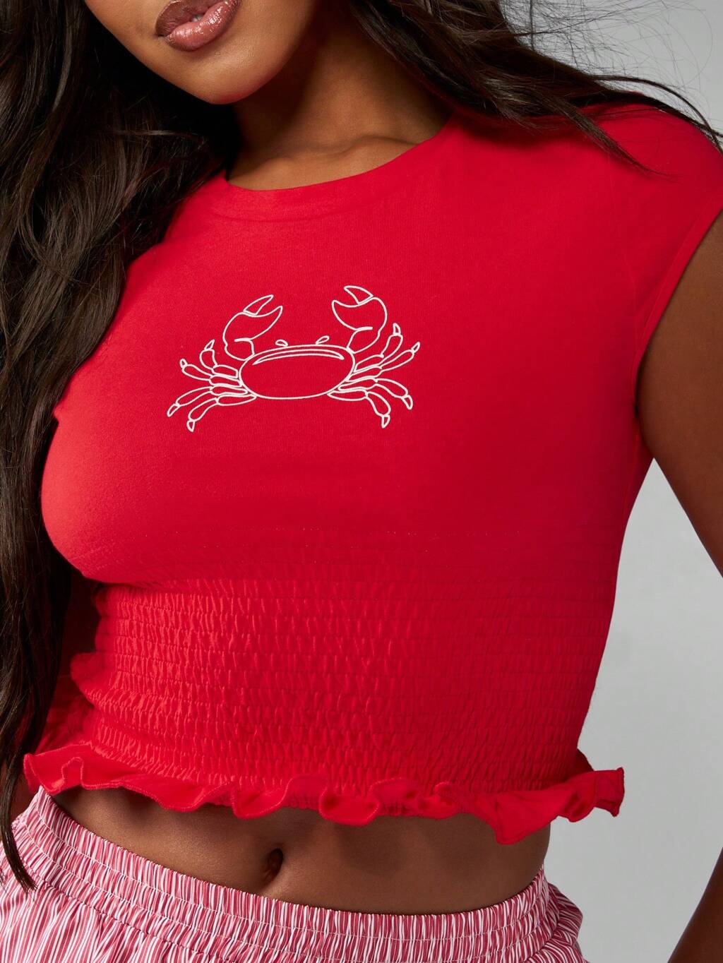 MISSGUIDED Smocked Waist Crop T-Shirt With Crab Print