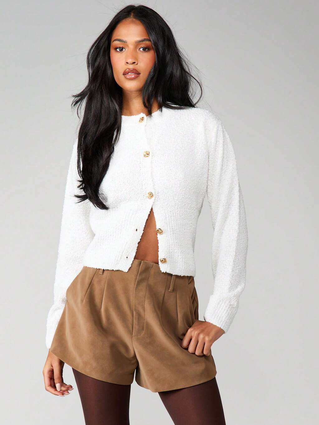 MISSGUIDED Fluffy Button Front Cardigan With Gold Hardware