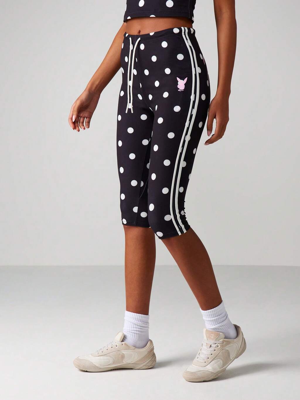 Missguided x Playboy Polka Dot Capri Leggings With Side Stripe