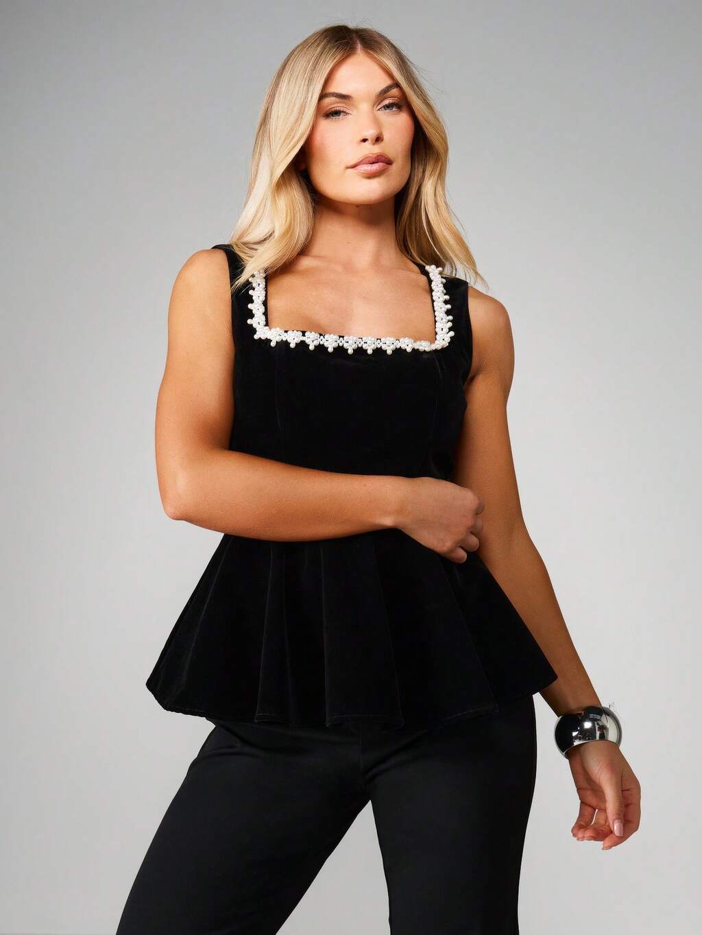 MISSGUIDED Christmas Square Neck Peplum Velvet Top With Lace Trim