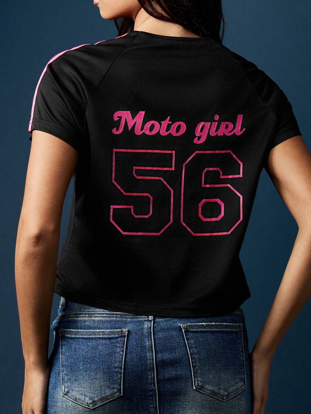 MISSGUIDED Cropped Racing T-Shirt With Number Graphics And Pink Stripes